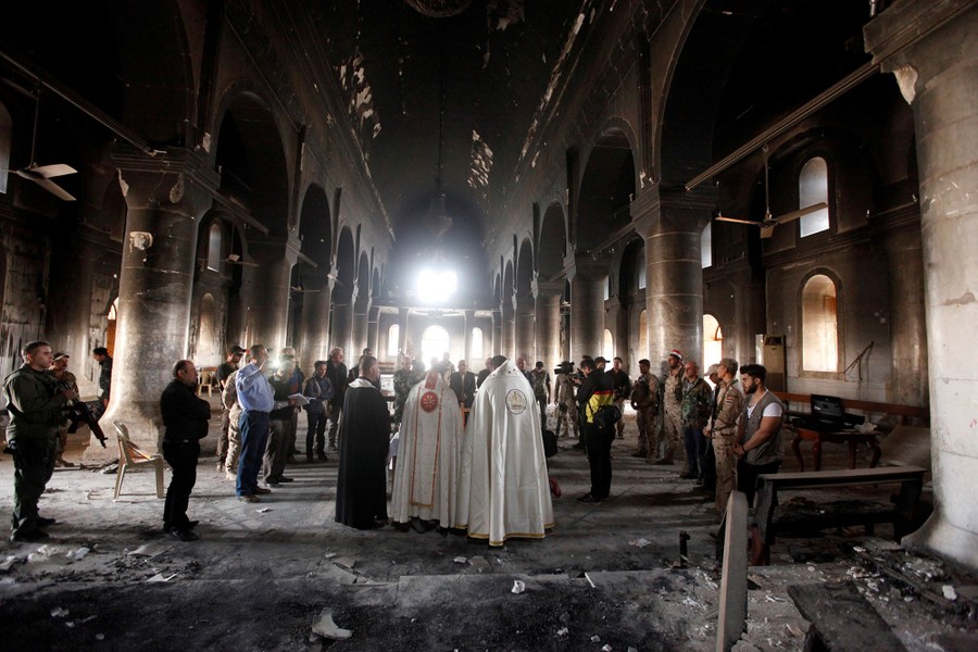 Read moreIraqi Christian residents of Qaraqosh attend the first Palm Sunday service at the heavily damaged Church of the Immaculate Conception on April 9, 2017, since Iraqi forces recaptured it. #