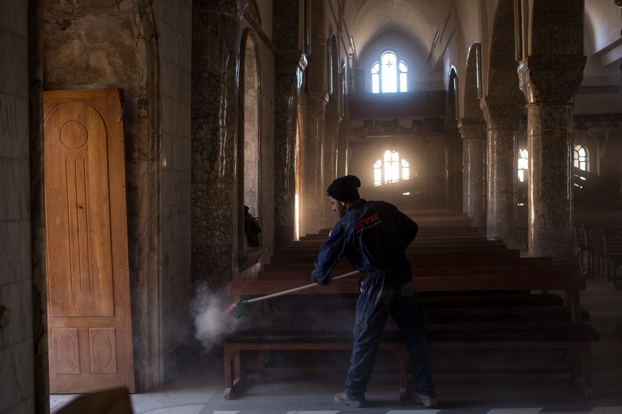 In August of 2014, ISIS militants swept through towns near Mosul, Iraq, taking control and forcing thousands to flee. Among the towns was Qaraqosh, which was Iraq's largest Christian city with a population of 50,000. For more than two years, occupying ISIS jihadists tried to erase any evidence of Christianity from Qaraqosh—burning churches, destroying icons and statues, toppling bell towers, and more. Qaraqosh was retaken by Iraqi forces in October of 2016, but the city remains almost completely deserted. Little by little, some residents who were forced to flee have been returning to recover what belongings remain, to assess the damage to their property, and to attend church services and holidays. Only a handful of families have moved back to the city so far, still fearing for their security, as Iraqi forces continue to battle ISIS in nearby Mosul.