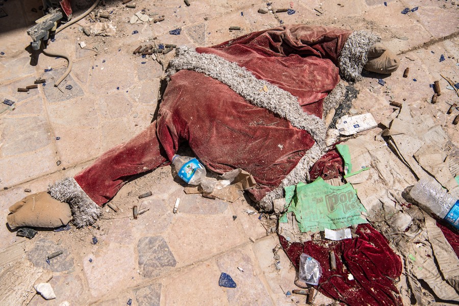 Read moreA destroyed Santa Claus costume lies on the floor of Saint John's Church (Mar Yohanna) during an Easter ceremony in the Christian Iraqi town of Qaraqosh on April 16, 2017. #