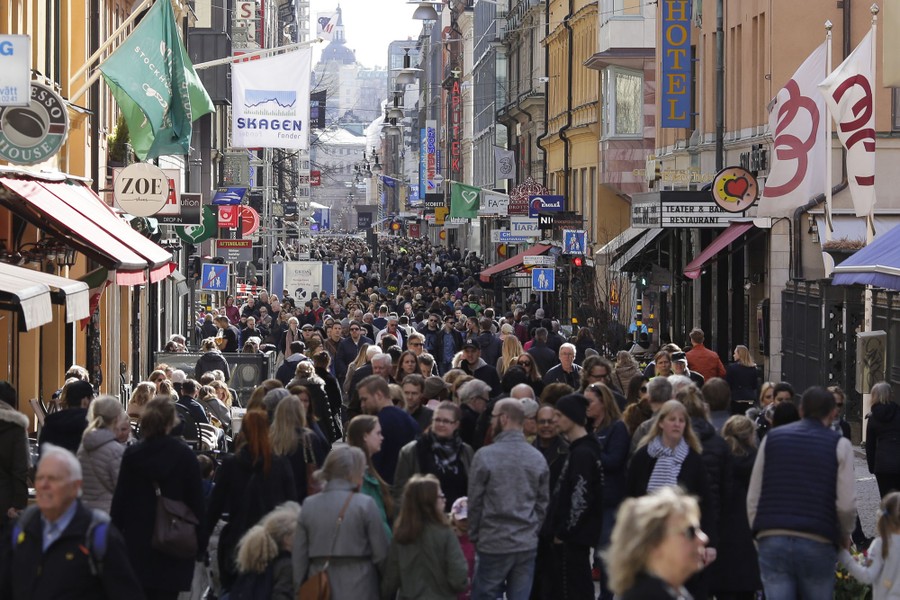 Read morePeople crowd into the reopened Drottninggatan, one of the city's main shopping streets where the department store Ahlens is located, in Stockholm, Sweden, on April 9, 2017. #