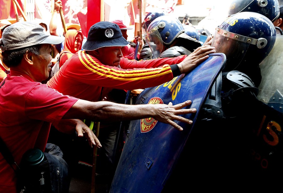 Read moreProtesters clash with riot police as they attempt to force their way closer to the U.S. Embassy to mark the global celebration of May Day in Manila, Philippines on May 1, 2017. #