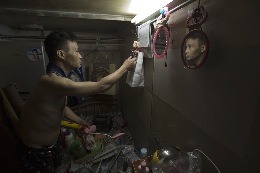 Associated Press photographer Kin Cheung spent time recently photographing some of the tiny subdivided housing units in Hong Kong, known as “coffin homes,” and those who live in them. Cheung reports that there is a “dark side to the property boom in wealthy Hong Kong, where hundreds of thousands of people priced out of the market must live in partitioned apartments, ‘coffin homes’ and other inadequate housing.” These residents are among an estimated 200,000 people in Hong Kong living in such tiny subdivided units, some so small that a person cannot even fully stretch out their legs.