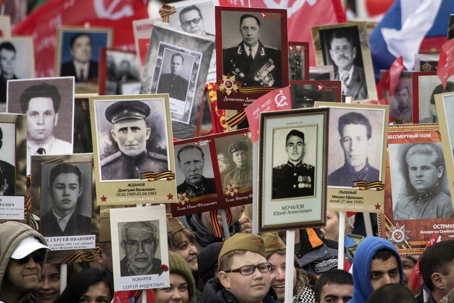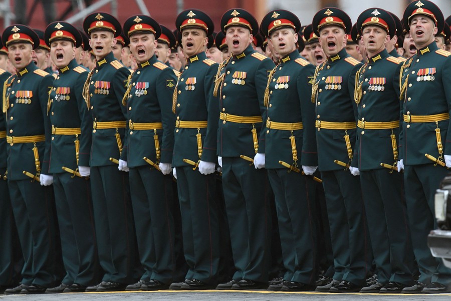 Today was observed throughout the former Soviet republics as Victory Day—the 72nd anniversary of the defeat of Nazi Germany on May 9, 1945. Thousands of members of Russia's military marched through Moscow's Red Square alongside over 100 pieces of mobile military hardware, while veterans dressed in their medal-festooned uniforms gathered in the streets. The parade was the centerpiece of Russia's most solemn secular holiday, commemorating the Soviet Union's enormous sacrifices in the war—an estimated 25 million dead—while making a display of the strength of Russia's modern military. Gathered here are images from today’s parade and rehearsals earlier in the week.