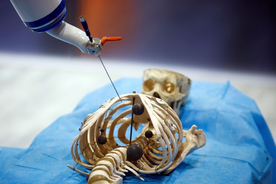 Read moreA robot of the Siasun Robot and Automation Corporation simulates the use of a medical instrument on a model of a human skeleton at the WRC 2016 World Robot Conference in Beijing, China, on October 21, 2016. #