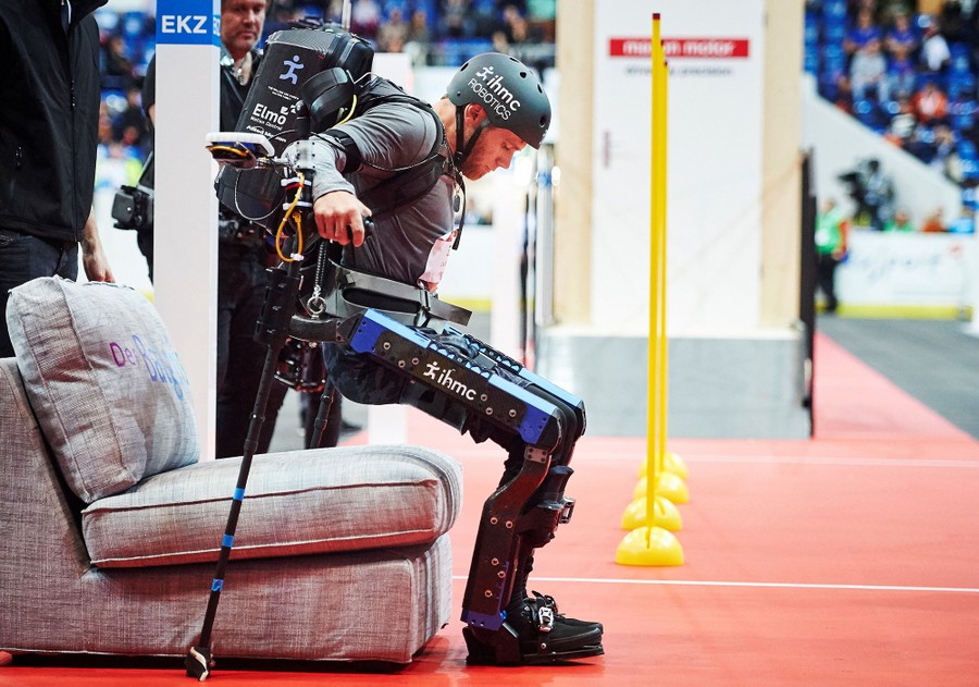Read moreMark Clayton Daniel of the US competes during the exoskeleton race in Kloten, Zurich, at the Cybathlon Championship, the first edition of an international competition organised by ETH Zurich for physically impaired athletes using bionic assistive technology, such as robotic prostheses, brain-computer interfaces and powered exoskeletons, on October 8, 2016. #