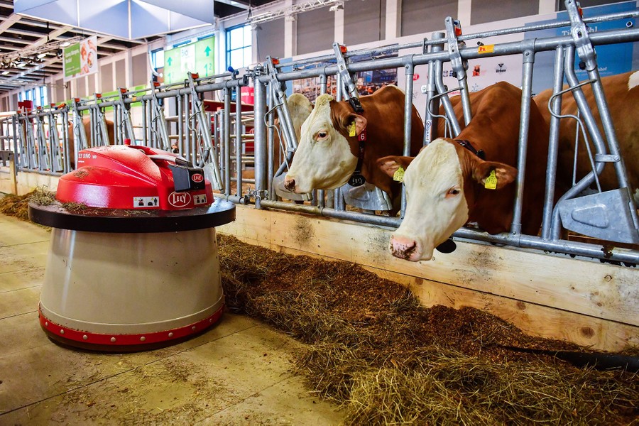 Read moreA robot automatically sweeps food towards two dairy cows at an "automated farm" exhibit at the International Green Week (Grüne Woche) food and agriculture fair in Berlin on January 19, 2017. #