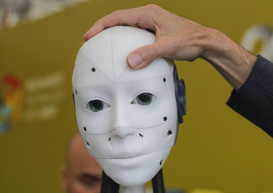 Read moreFrench designer Gael Langevin adjusts the position of the InMoov robot's head after he unveiled it at a technology fair in Bucharest, Romania, on May 26, 2017. Based on an idea developed from a prosthetic hand Langevin made in 2011, the first-ever made on a 3D printer, the robot can be programmed to speak English, Spanish, French, Russian and Dutch, with a basic model costing about 1,500 euros, ($1,665 USD). #