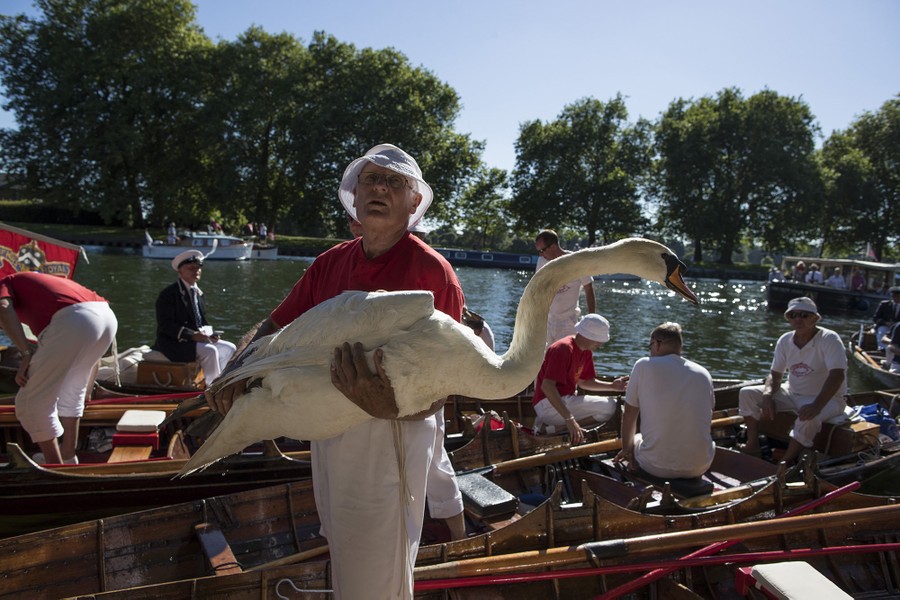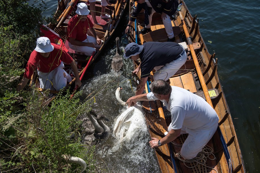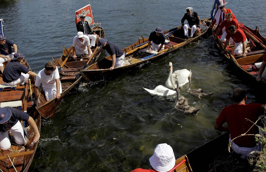 The annual Swan Upping began today in London, England. The five-day census—which dates back to the twelfth century—counts swans and young cygnets belonging to the Queen, while watching for signs of injury or disease. According to Reuters, the ceremony began in the 1100s, when the Crown claimed ownership of all mute swans in the kingdom. “Today, the Crown retains the right to ownership of all unmarked mute swans in open water, but the Queen only exercises her ownership on certain stretches of the River Thames and its surrounding tributaries.” The Swan Upping takes place on the third week of July every year, and collected below are images of the event from recent years.