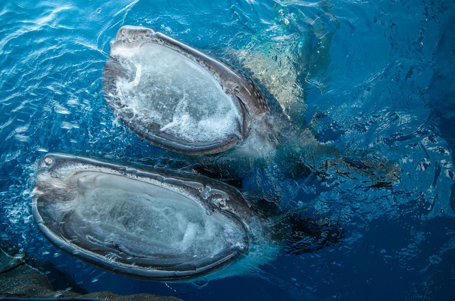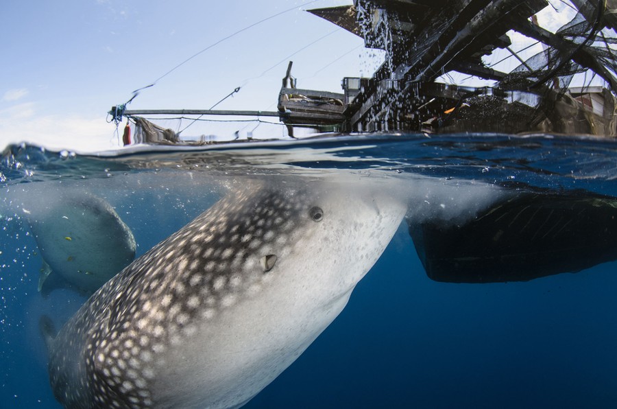 In Cenderawasih Bay, in West Papua, Indonesia, fishermen set out for days on hand-made floating platforms called bagans. At night, they turn on lights to attract squid and baitfish, and lower nets from their bagans—also attracting whale sharks to the smell and commotion. Bagan fishermen have long believed that whale sharks bring good luck and feed them bits of baitfish. Today, the luck comes to them in the form of marine tourism, as people travel to Cenderawasih Bay for up-close encounters with these gentle giants. Photographer Pete Oxford visited the bay, and returned with these photos, recently published in the online magazine bioGraphic.
