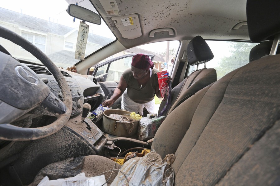 Read moreGillis Leho looks for documents in her car that was submerged in floodwaters in Houston on August 30, 2017. Leho had been planning to evacuate, but had to quickly escape through a window with her grandchildren as rising waters rushed in from nearby Buffalo Bayou. She is staying at the George R. Brown Convention Center but returned home to try and retrieve medications needed for herself and her grandchildren. #