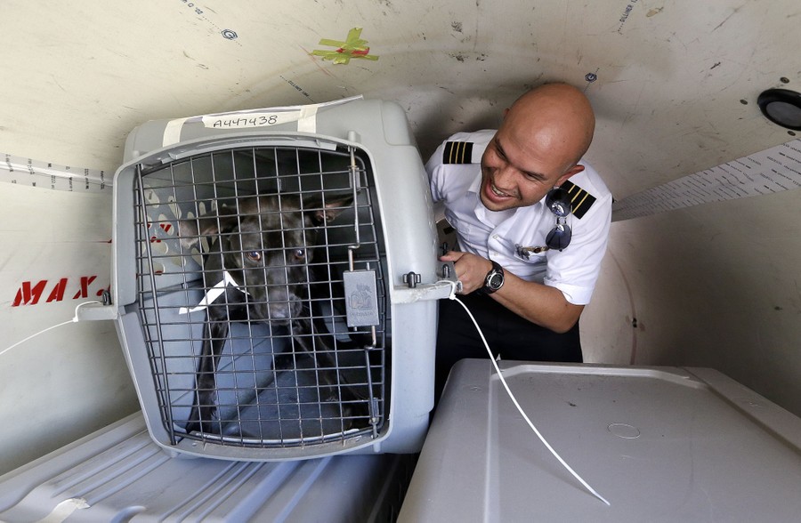 Read moreWings of Rescue co-pilot Jose G. Martinez reaches for one of the last of of a load of 35 dogs from Texas shelters flown to make space for companion animals rescued in the Hurricane Harvey aftermath in Seattle on August 30, 2017. The dogs arriving in Seattle were already in Texas shelters when Harvey hit and are being transferred to Seattle-area shelters so animals displaced from the flooding can be cared for in Texas until they can be reunited with their families there. The rescue transfer is a collaboration between the Humane Society of the United States, Wings of Rescue, the Progressive Animal Welfare Society (PAWS), and other Seattle-area shelters. #