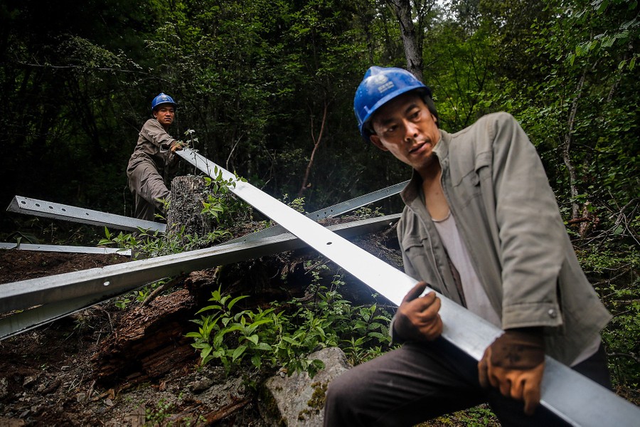Read moreAn electric tower built by workers in Ranwu, Tibet Autonomous Region, on July 31, 2017. #