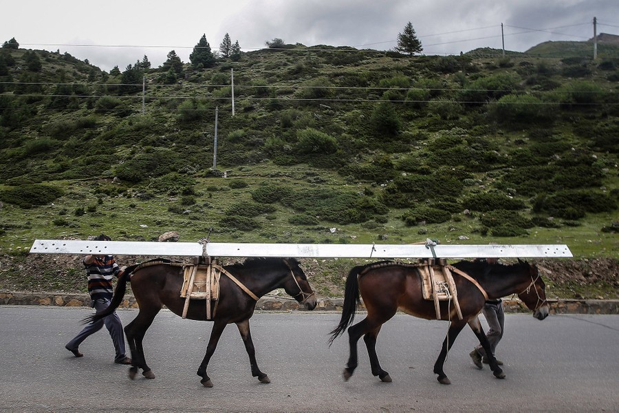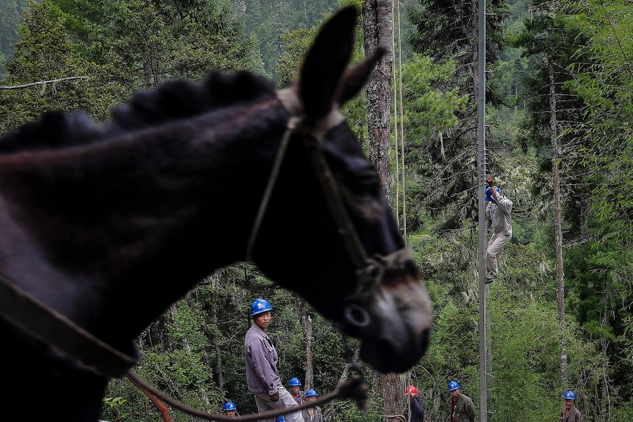 In Tibet’s Hengduan Mountains, workers are hauling thousands of parts over challenging terrain by mule and by hand to build huge transmission towers for the Tibet Electric Power Networking Project. The complex power transmission project is designed to join and upgrade Tibet’s current disconnected and underpowered power transmission systems. The project is due to be completed in 2018.