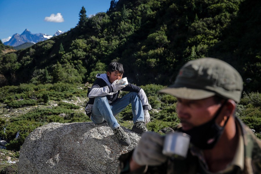 Read moreA groom cooks at camp after a day of work on August 2, 2017 in Nyingchi. #