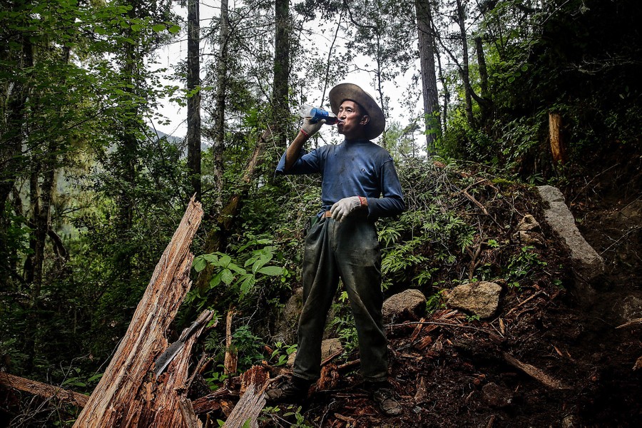Read moreA worker on the Tibet electric power networking project pauses on August 2, 2017 in Nyingchi. #