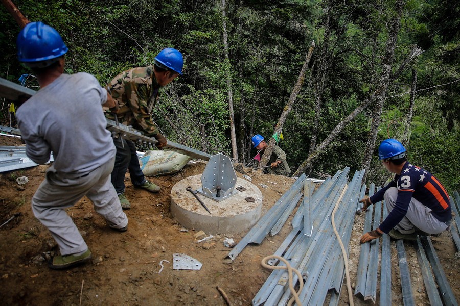 Read moreWorkers assemble an electric tower on August 2, 2017 in Nyingchi, Tibet. #