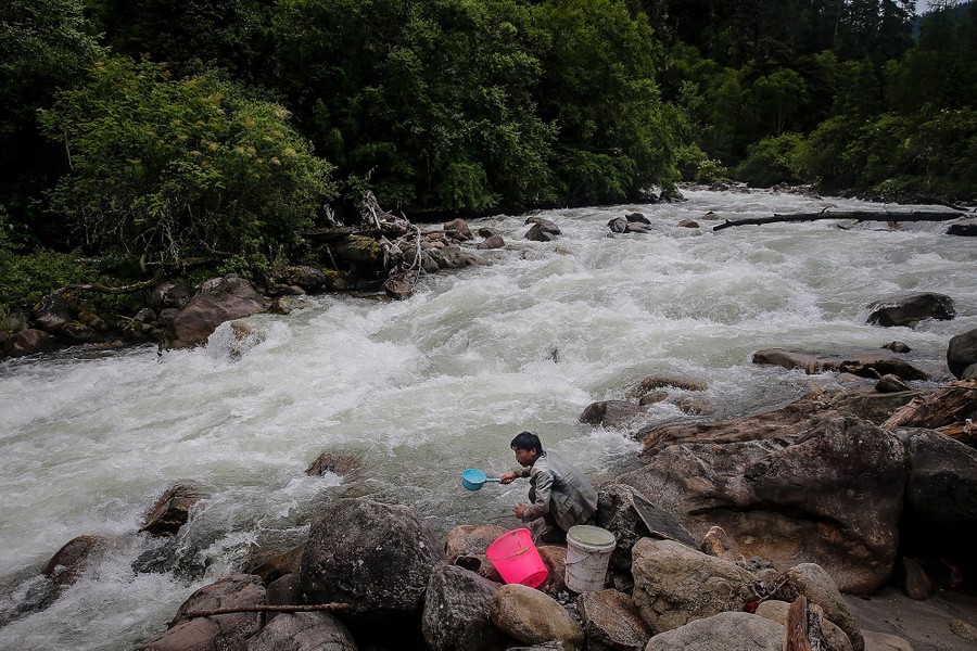 Read moreA groom collects river water after a day of work on August 2, 2017 in Nyingchi. #