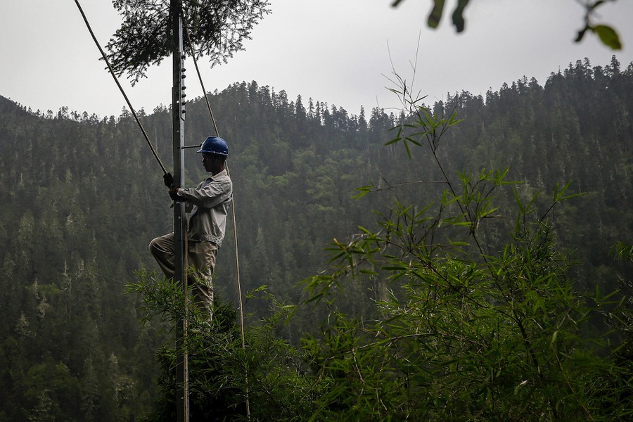 Read moreA worker builds an electric tower on August 2, 2017 in Nyingchi, Tibet Autonomous Region. #