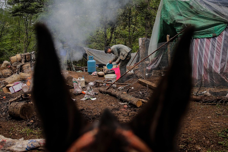 Read moreA worker rests after leading mules carrying parts for construction of an electric tower up a mountain on July 30, 2017 in Qamdo. #