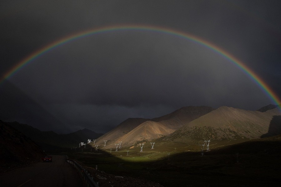 Read moreA rainbow shines over electric towers under construction on July 26, 2017 in Qamdo, Tibet Autonomous Region, China. #