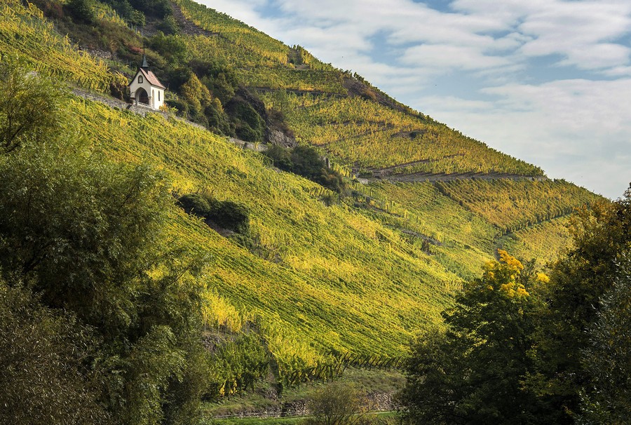 Read moreThe Pinot Gris Grand Cru Rangen vineyard grows on the steep hillsides in Vieux-Thann, eastern France, seen here on September 27, 2017. On the slopes of the Rangen, dominating the municipality of Vieux-Thann, the grapes are collected by pickers roped to each other like mountain climbers. #