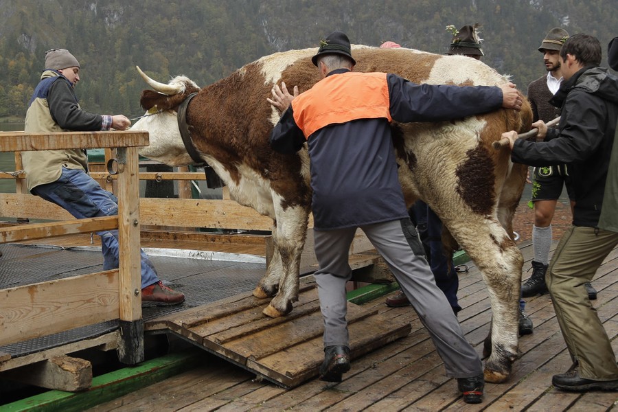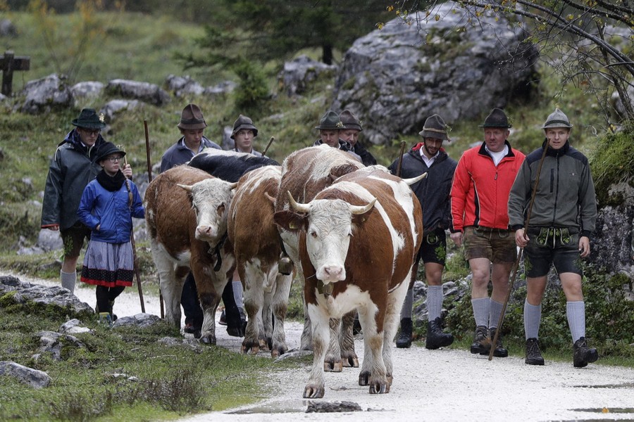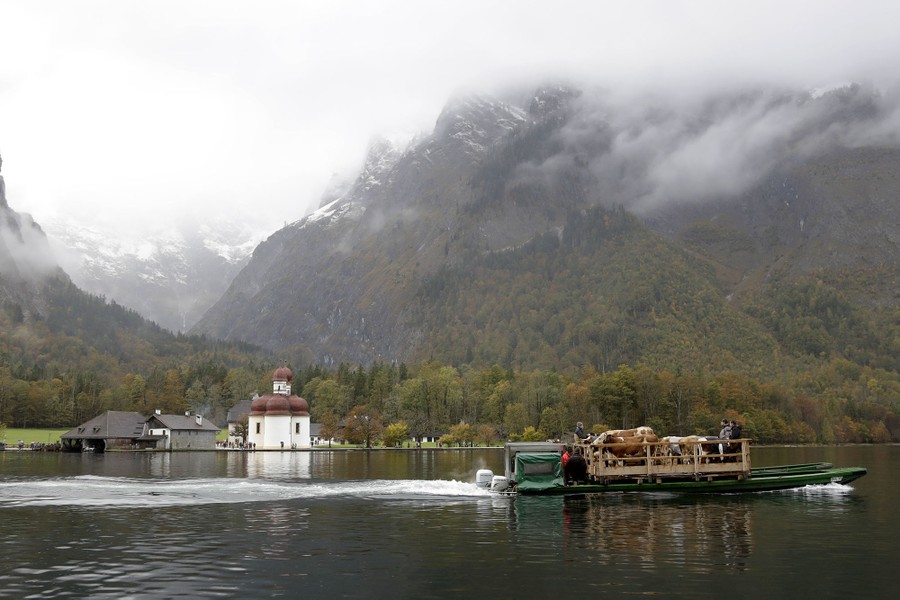 Read moreBavarian mountain farmers and their cattle pass the chapel of St. Bartholomae on Lake Königssee while returning from summer pastures near Berchtesgaden, Germany, on October 7, 2017. #