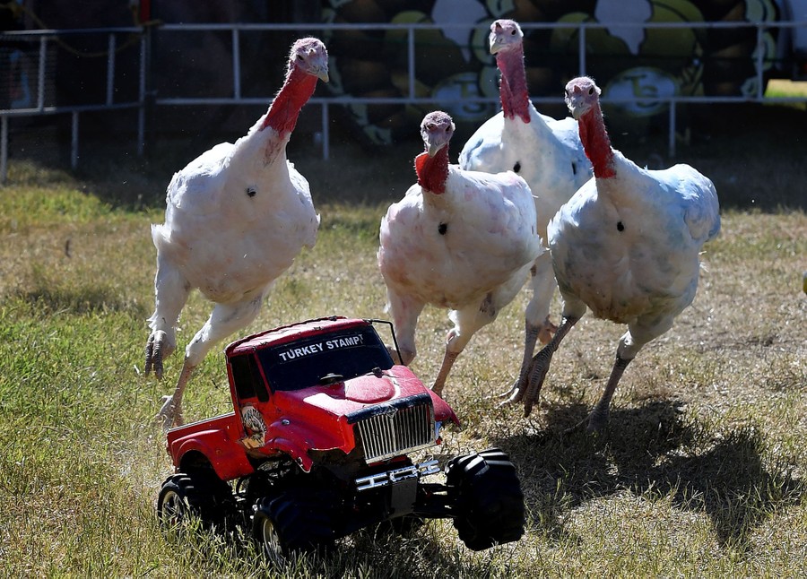Read moreTurkeys compete in a Turkey Stampede race during the annual Kern County Fair in Bakersfield, California, on September 30, 2017. The turkeys chase a small remote-controlled truck carrying food as bait. #