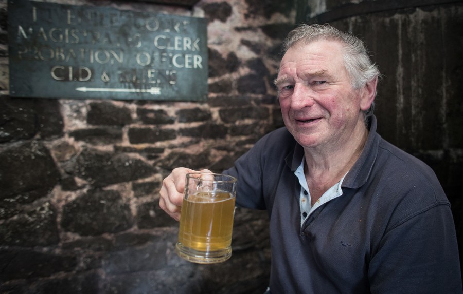 Read moreCider maker Roger Wilkins, owner of Wilkins Cider Farm, enjoys a pint of traditional cider as he takes a break from pressing apples at Lands End farm in the village of Mudgley on October 3, 2017. Westcountry apple growers say "perfect" weather conditions in 2017 have made for a bumper crop for making cider, thanks to a hot summer, cold winter, and damp end to growing season. #