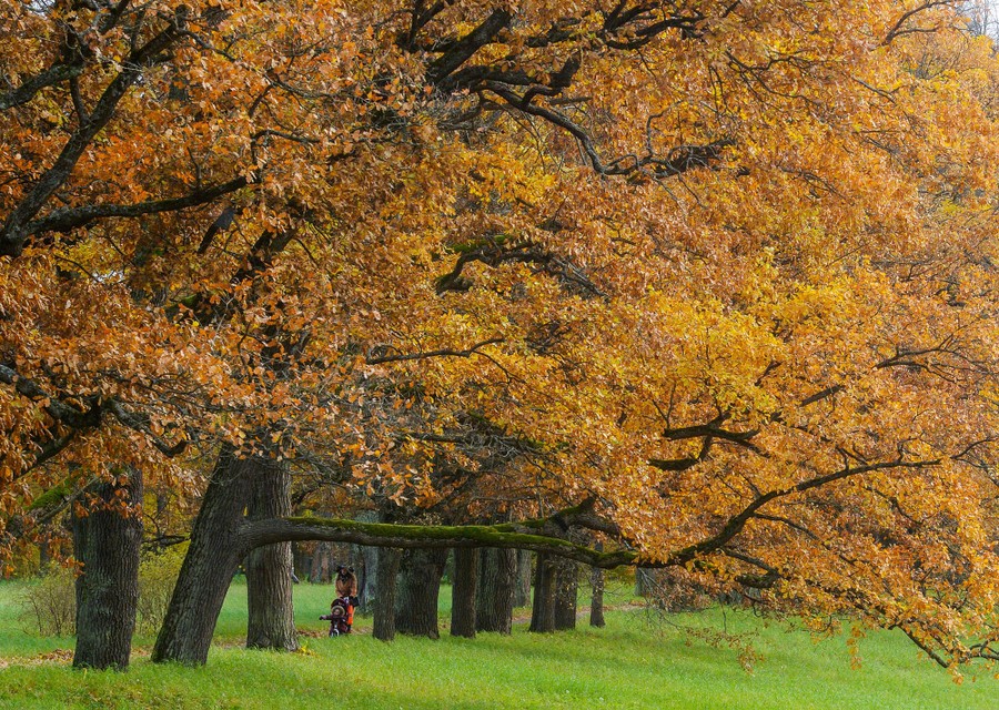 Read moreA woman walks with a baby at a park in Tsarskoye Selo, the former summer residence of the tsars on the outskirts of Saint Petersburg, on a cloudy autumn day, October 17, 2017. #