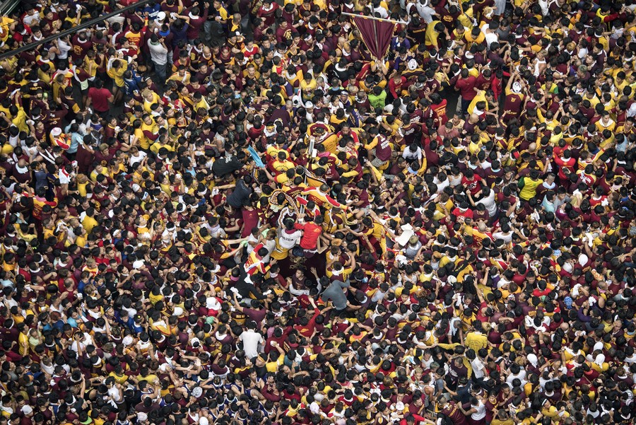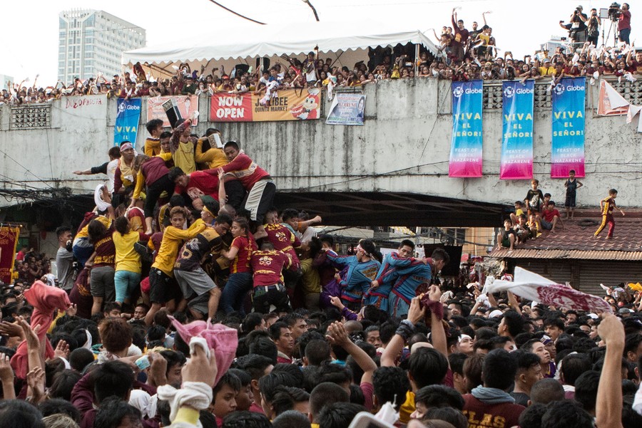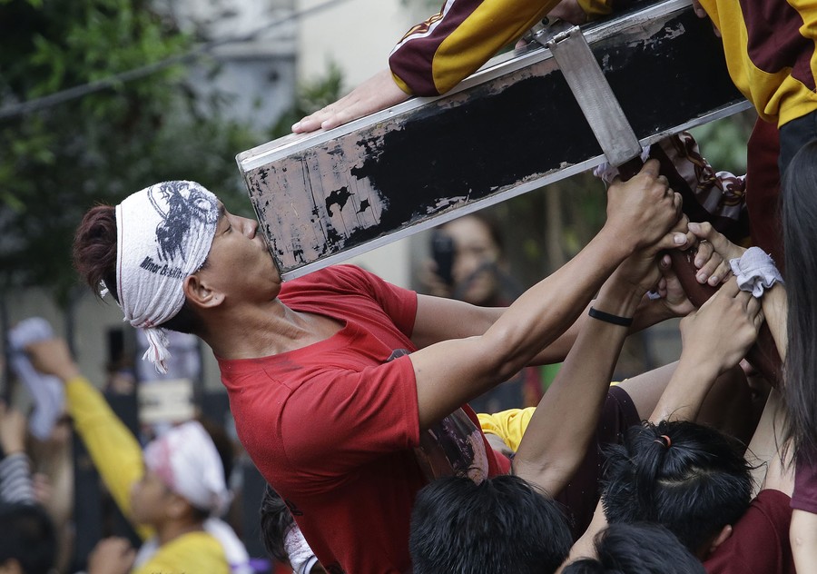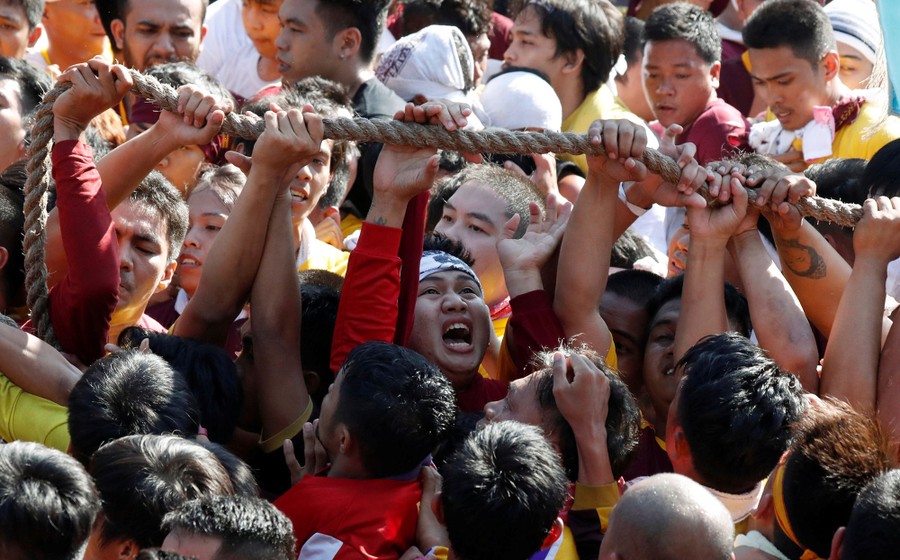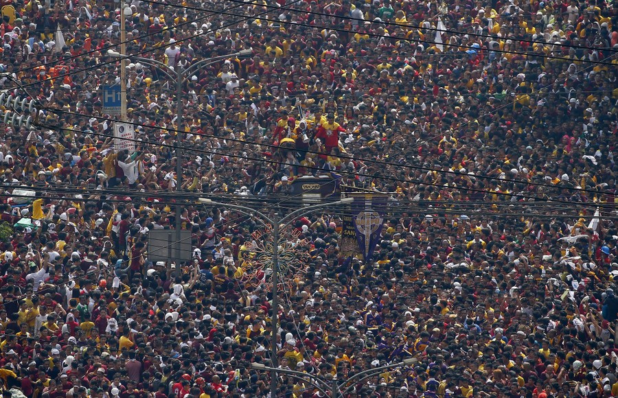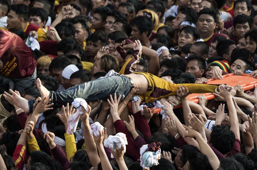 This week, in Manila, Philippines, hundreds of thousands of Catholic devotees took part in an annual procession lasting 22 hours, where they carry a centuries-old icon of Jesus Christ through the streets as barefoot worshipers climb over each other to kiss, touch, or rub bits of cloth on the statue. The Black Nazarene is an ebony statue of Jesus Christ brought to the Philippines in 1606, and is believed to have miraculous powers.