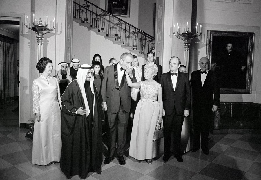 Read morePresident Johnson kisses the hand of Mrs. Humphrey, as her husband, the Vice President watches. Attendants of the final state dinner of Johnson's administration gathered for the portrait: including the Amir of Kuwait, Shaikh Sabah, the guest of honor. #