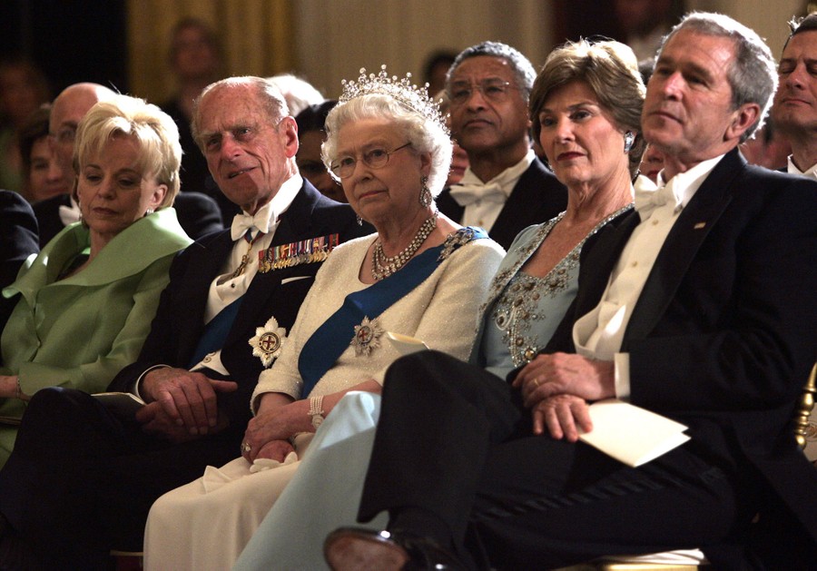 Read moreFrom left: Lynne Cheney, Prince Philip, Queen Elizabeth II, first lady Laura Bush, and President Bush listen to entertainment during a state dinner at the White House on May 7, 2007, in Washington, D.C. #