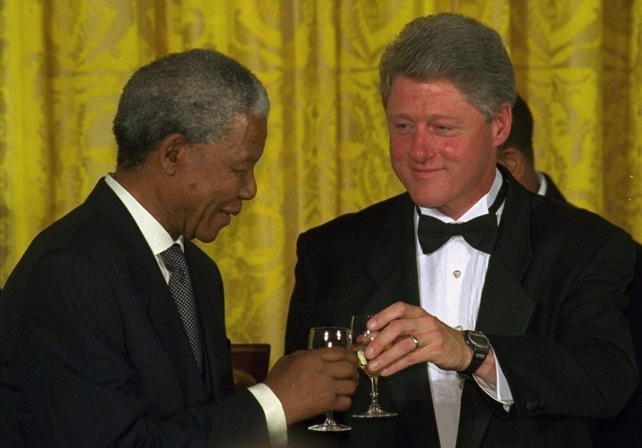 Read moreSouth African President Nelson Mandela and President Clinton give a toast during a state dinner on October 4, 1994 in the East Room of the White House. Mandela stressed in his toast to Clinton an enduring partnership between South Africa and America. Clinton in turn toasted Mandela as a genuine inspiration to the American people. #