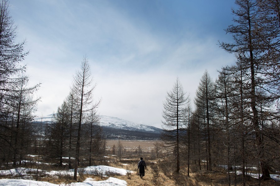 Read moreLocal doctor Davaajav Nyamaa rides a reindeer to visit nomads in a forest near Tsagaannuur on April 19, 2018. Nyamaa is an ethnic Darkhad, herders from northern Mongolia who historically inhabited the steppe that borders the taiga forests. He grew up around the Dukha, who he visits as a doctor for checkups and treatments in their tents on a regular basis. #