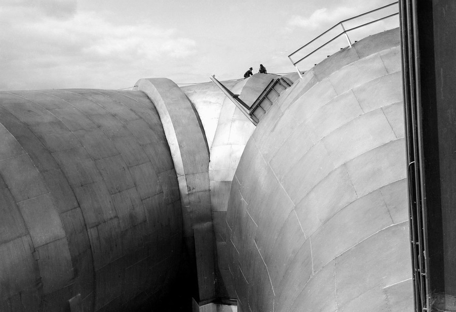 Read moreTwo men on top of the altitude wind tunnel at the NACA Aircraft Engine Research Laboratory, circa 1945. The tunnel was a massive rectangular structure, which for years provided one of the highest vantage points of the laboratory. The tunnel was 263 feet long on the north and south legs and 121 feet long on the east and west sides. The larger west end of the tunnel, seen here, was 51 feet in diameter. #