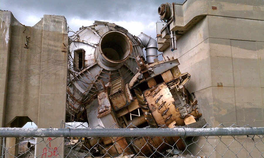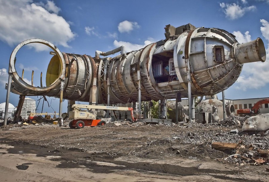 Read moreAt lower left, evidence of a mishap during testing in the full-scale tunnel at Langley Research Center in 1948. A helicopter rotor that had been attached to the apparatus at right tore loose and crashed into the structure. #