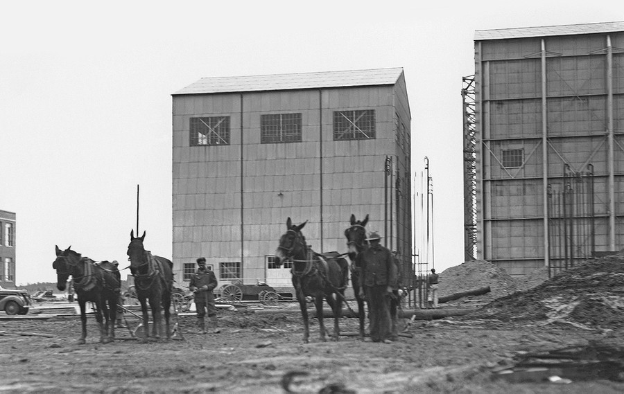 Read moreThe eight-foot-high speed tunnel, located in Building 641 of NASA's Langley Research Center in Hampton, Virginia, seen from the water in 1936. The reinforced concrete structure contained generated winds up to Mach 1. #