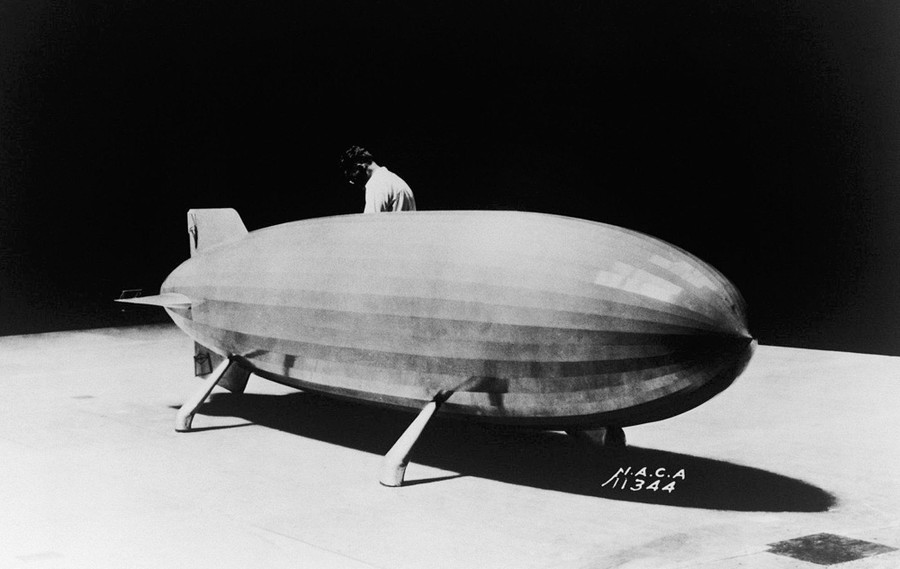 Read moreA 1/40th-scale model of the navy airship U.S.S. Akron being prepared for aerodynamic testing on a ground board at zero degrees of yaw in the full-scale tunnel in 1935. #