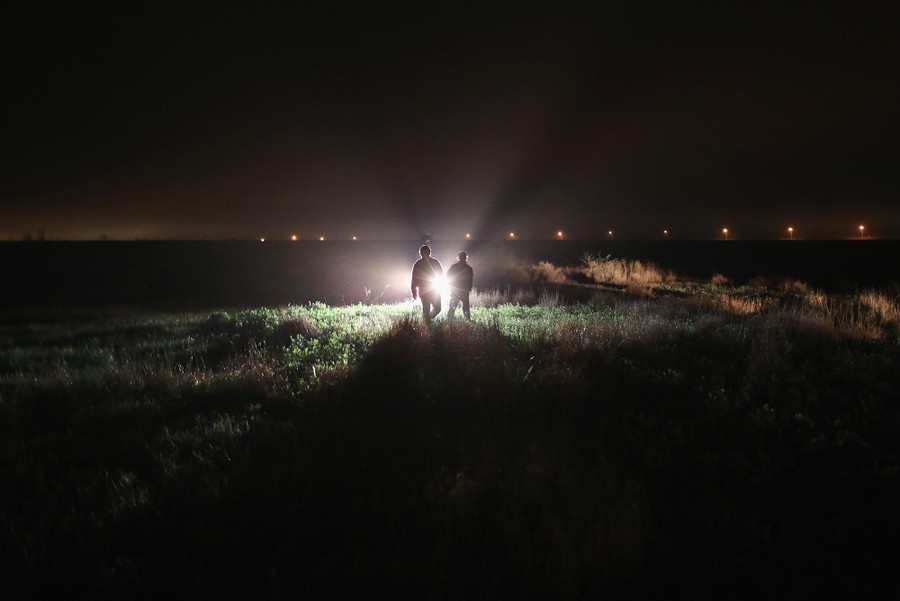 Read moreA U.S. Border Patrol spotlight shines on a terrified mother and son from Honduras as they are found in the dark near the U.S.-Mexico border on June 12, 2018, in McAllen, Texas. The asylum seekers had rafted across the Rio Grande from Mexico and had become lost in the woods. They were then detained by Border Patrol agents and sent to a processing center for possible separation. #