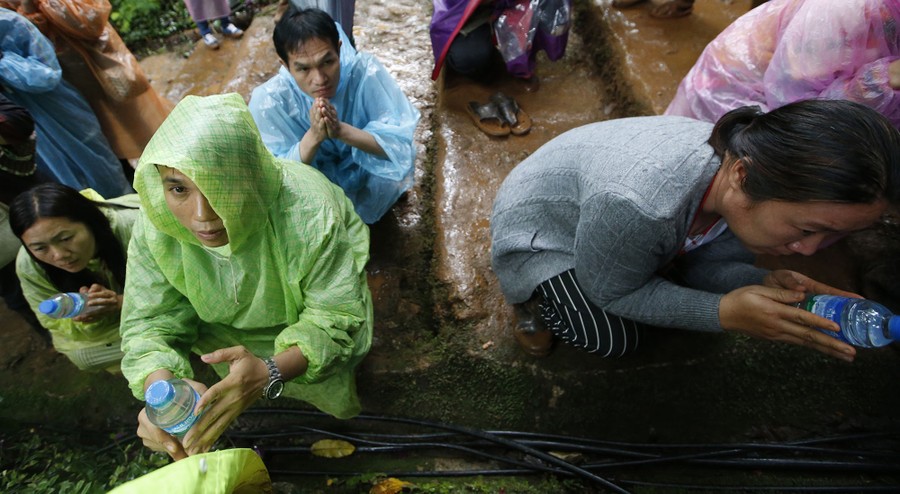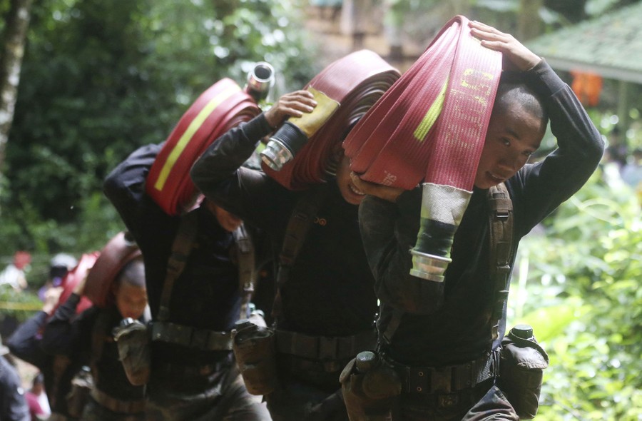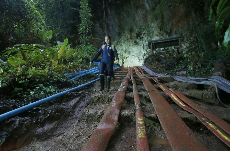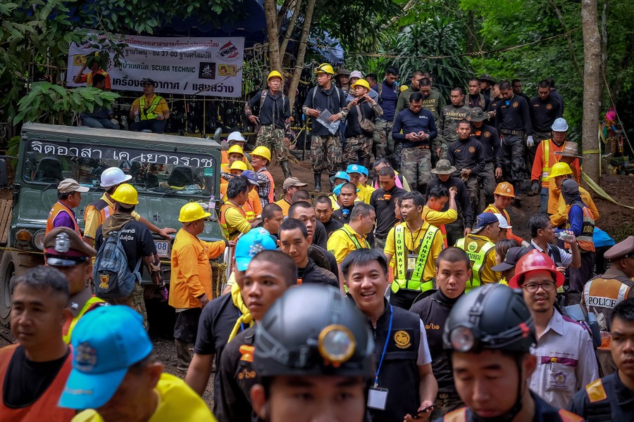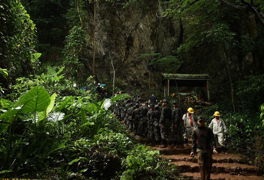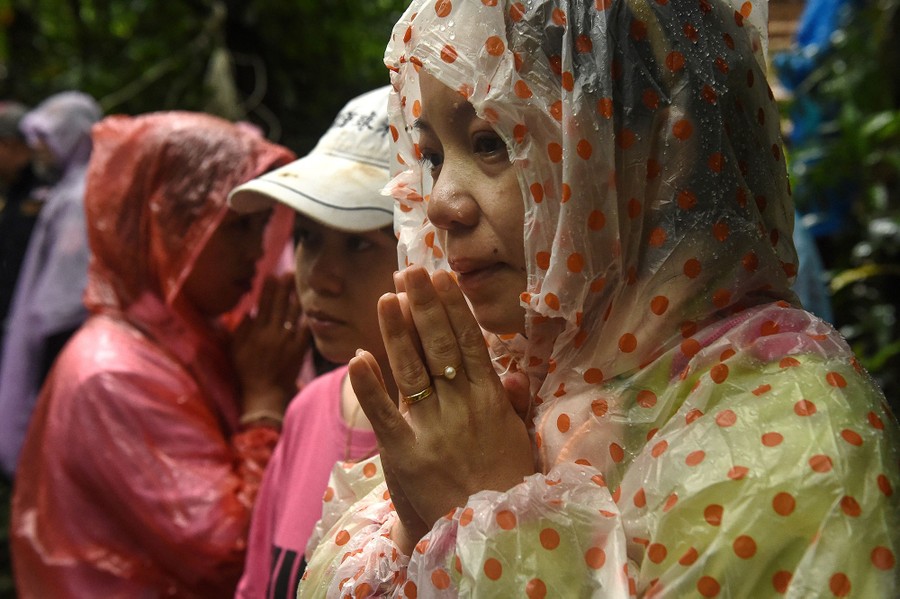 In northern Thailand, hundreds of international rescue workers spent the past 10 days searching for a group of 12 boys, ages 11 to 16, and their 25-year-old soccer coach who became trapped in a cave after flooding caused by relentless monsoon rains. Late on July 2, rescue teams discovered all of the boys and their coach alive and in relatively good health, sheltering deep inside the cave complex. Outside, family and friends, who gathered in recent days to pray, welcomed the news. While the boys have been found, extracting them from the cave still remains a difficult task—much of the return trip is underwater and even though pumps are lowering the water level, the rainfall is not letting up. Thai officials are reportedly weighing options that include waiting for passages to become dry enough, or providing the boys with diving gear and having them swim through some submerged sections.