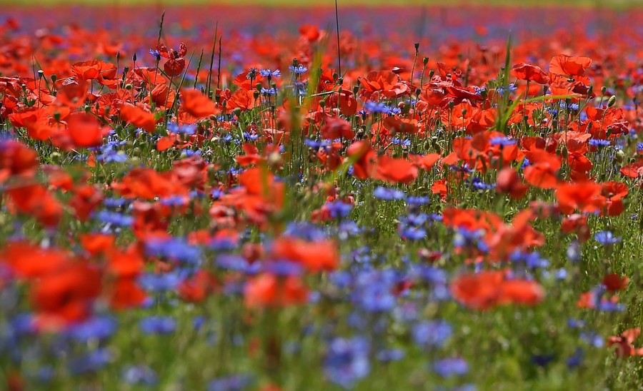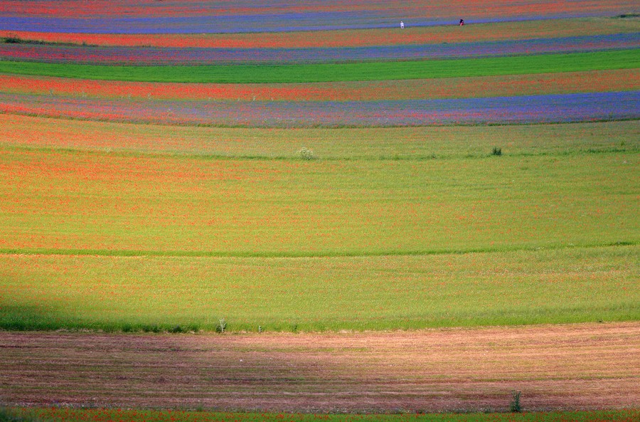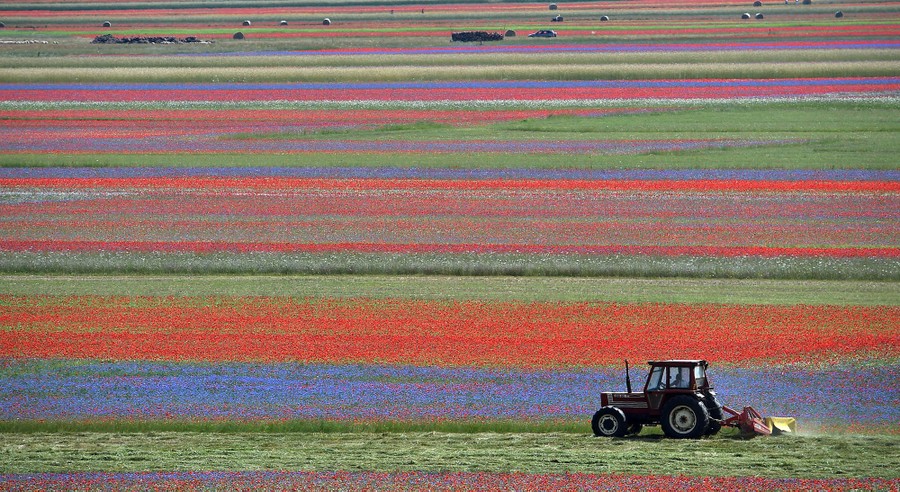 In central Italy’s Umbria region, the small village of Castelluccio sits atop a hill overlooking a broad, flat basin surrounded by the Sibillini Mountains. In October 2016, a significant earthquake struck the area, badly damaging the village and roads—but farming still takes place in the Piano Grande below, where fields of lentils and poppies bloom every year, carpeting the landscape with a colorful quilt of blossoming flowers.