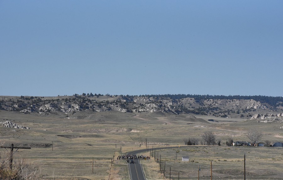 Read moreFort Laramie treaty riders can be seen travelling on a road as they make their final approach to Fort Laramie just outside of Fort Laramie, Wyoming, on April 27, 2018. #
