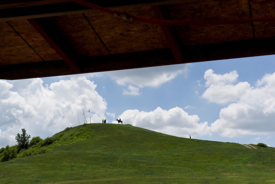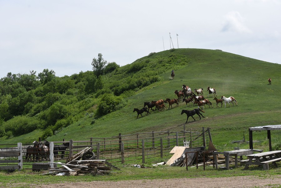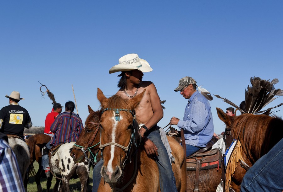 Read moreJayden Lookinghorse, riding his horse, stands on top of a hill at Arvol Lookinghorse's home on the Cheyenne River Reservation on May 30, 2018. Parts of Arvol Lookinghorse's land are considered to be very sacred and to be the spiritual center of the Lakota Nation, and Arvol Lookinghorse is the "keeper of the sacred bundle," a sacred collection of artifacts for the Lakota people. Many Lakota people and other pilgrims come to this land for religious ceremonies and guidance. #