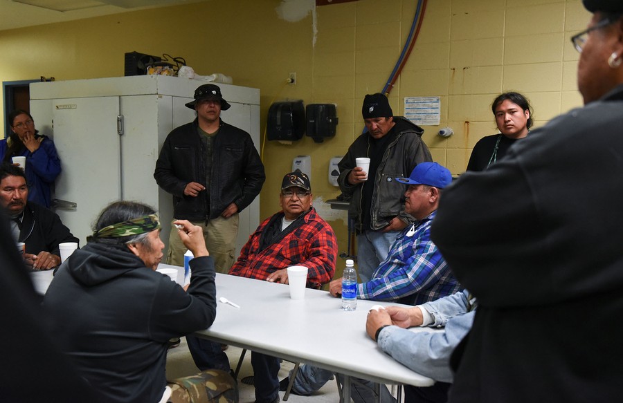 Read moreIvan Lookinghorse (center) and other Fort Laramie treaty riders meet in the kitchen of the Rockyford School gymnasium on the Pine Ridge Reservation on April 20, 2018. "Understand that we, as a people, we have been in poverty, we have been in depression, we have been Christianized, we have been boarding schooled, our language has been taken away from us, but we are on our way back to who we once were," Lookinghorse said. "We are standing up on our two feet," he continued. "We are taking our place in the world, the protectors of the Grandmother Earth." #