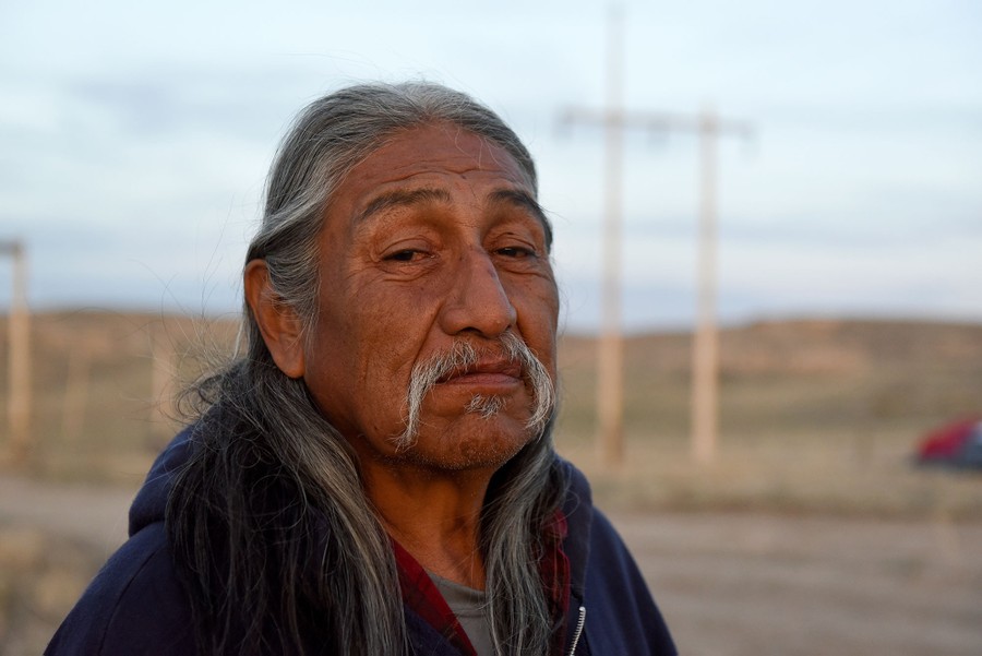 Read moreDuane Blindman, 64, of the Oglala tribe, from Slim Buttes on the Pine Ridge Indian Reservation, poses for a photograph in Van Tassel, Wyoming, on April 25, 2018. The area of Slim Buttes is located in the southwest portion of South Dakota and these riders joined the group as the ride passed through their area. #
