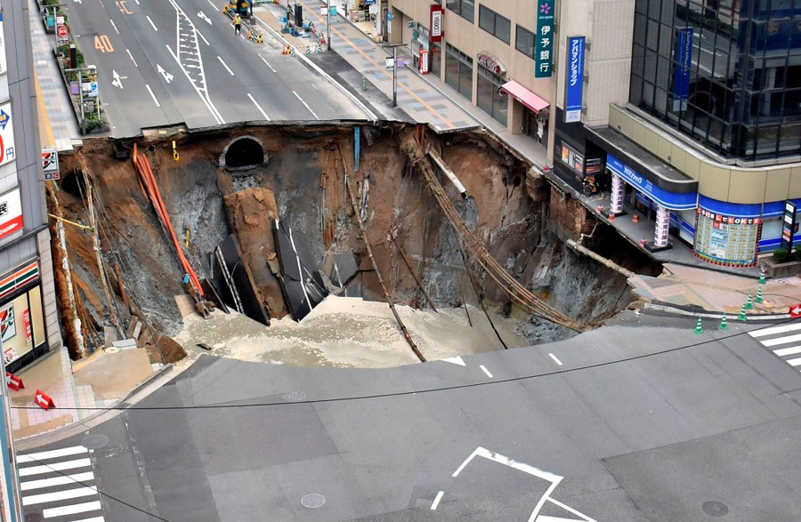 The ground beneath our feet, our highways, and our cities appears to be very sturdy. But, on rare occasions, that solid ground can simply open up without warning, dropping whatever it was supporting into an unpredictably deep hole. An undiscovered cavern or abandoned mine might collapse, or a broken water main or heavy storm might cause erosion, until the surface becomes a thin shell that drops away all at once. Sinkholes can be anywhere from a few feet wide and deep, to 2,000 feet in diameter and depth. Collected below are images of some of these sinkholes, both man-made and natural, around the world.