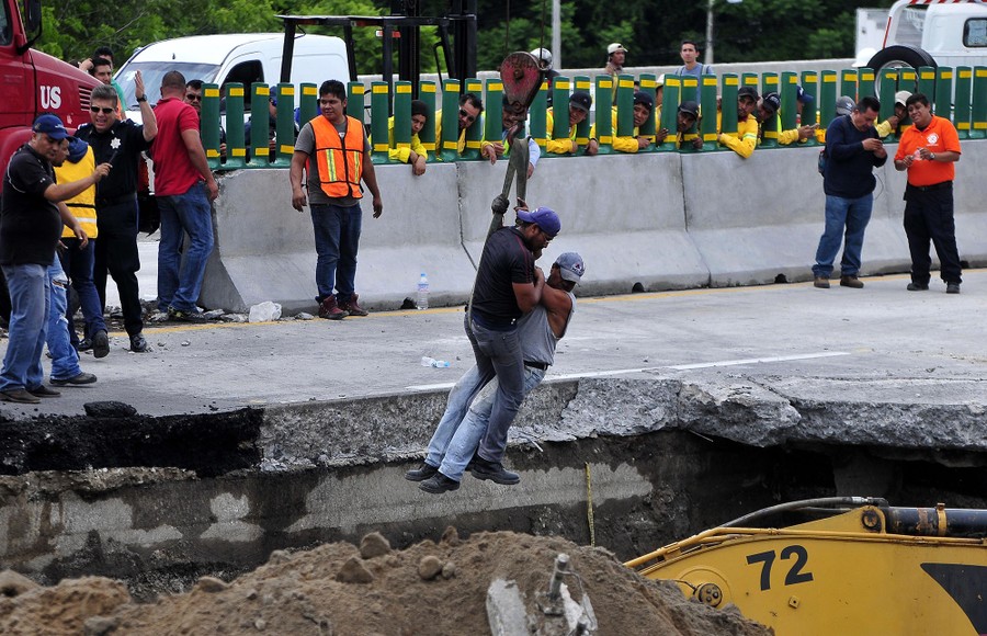 Read moreA man examines a 40-foot-deep sinkhole that opened up under the bed of a pensioner in Guatemala City on July 19, 2011. Inocenta del Rosal Hernandez, 65, awoke to a loud boom and found the earth under her bed had imploded, creating a circular hole. #