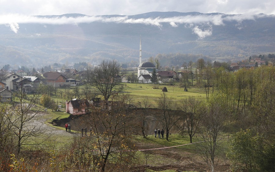 Read moreA vanished pond in Bosnia. People gather around a huge sinkhole in the village of Sanica, Bosnia, on November 21, 2013. Only weeks before, the spot was a pond full of fish and floating green algae, lined with old willow and plum trees, and a grass field where cattle used to peacefully graze. The pond was some 20 meters in diameter. Now the "abyss," as the villagers named the sinkhole, is some 50 meters wide and 30 meters deep. #