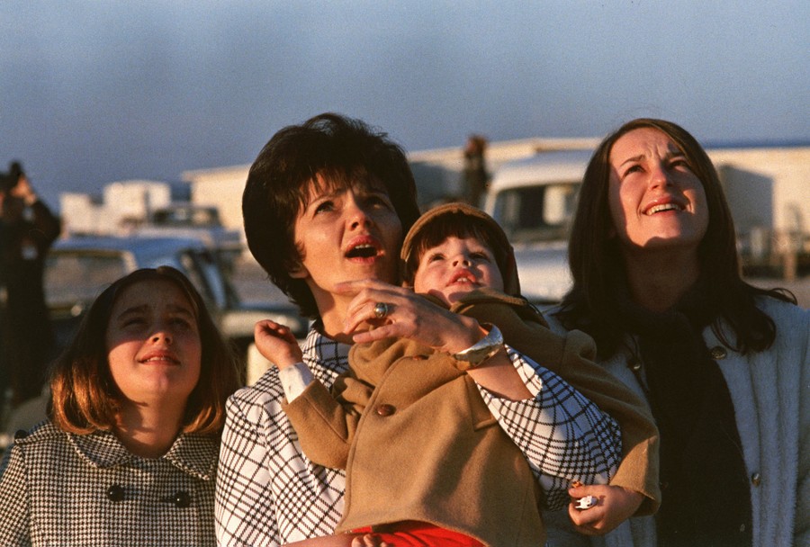 Read moreAs the Apollo 8 space mission takes off, Marilyn Lovell (second left), and three of her children (from left, Susan, Jeffrey, and Barbara), watch as her husband, the astronaut James Lovell, launches into space with his crew, from Cape Canaveral, Florida, on December 21, 1968. #