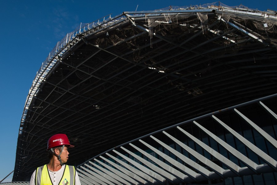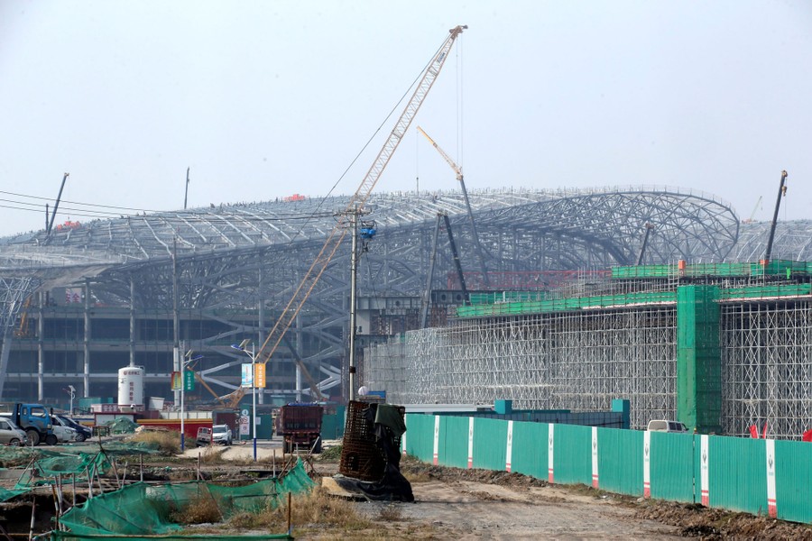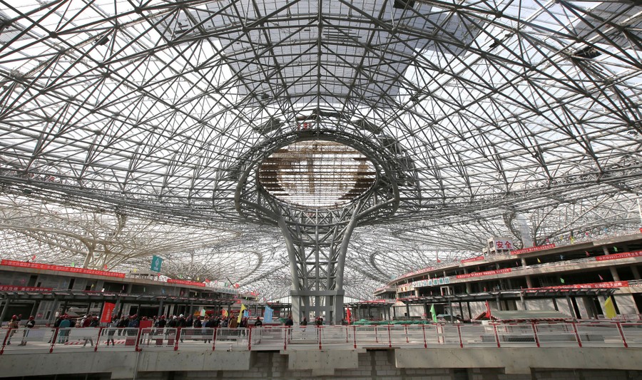 Beijing Daxing International Airport is a massive complex built on the outskirts of Beijing, China, from more than 220,000 tons of steel, with a price tag nearing 14 billion U.S. dollars, and is set for completion in September 2019. The new facility—billed as the world’s largest single-terminal airport—will be Beijing’s second international airport, and developers hope it will relieve pressure on overtaxed existing travel options. By 2025, planners say Daxing will be able to carry as many as 72 million passengers a year.